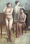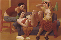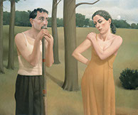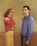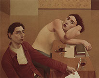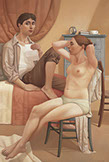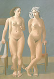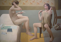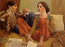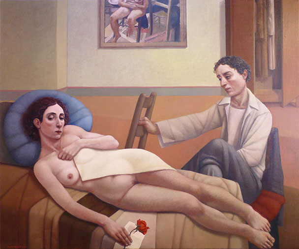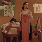[...] I might begin a painting with only a vague sense that it will have one or two figures. I begin directly with paint and without having made preliminary drawings on paper. I’ll put down a few tentative lines to indicate the position of a figure; a torso and its limbs delicately stated in a pale color so that what lines I put down I can shift or paint out while they they are still wet, or paint over easily after they dry. Then maybe a second figure enters and there will be an interaction between the two. And then maybe I'll put in an indication of the placement of a chair, or the division between wall and floor. At first what is starting to take form on the canvas is only minimal, but it will be enough that in my mind I can begin to see what it might become. Over a period of days things will appear and squirm and alter, and they may disappear, or they may remain But what remains will be changed from how they were at the start. And this will continue for weeks or months.